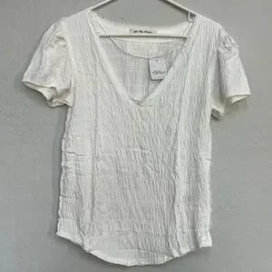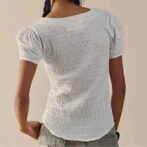 Free People Sugar Cube Tee size medium. New with tags. So sweet in a smocked design, this timeless tee is featured in a staple, short sleeve silhouette with V-neckline and pleating at shoulders for added shape.