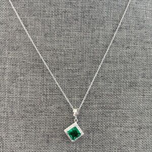 This elegant silver necklace features a stunning green pendant, perfect for adding a touch of sophistication to any outfit. The intricate design and vibrant color make it a standout piece in any jewelry collection.