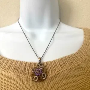 This exquisite necklace features a stunning gold and purple pendant, perfect for adding a touch of elegance to any outfit. The intricate design showcases a beautiful blend of colors, making it a standout piece in your jewelry collection.