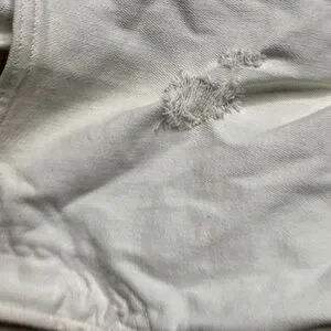 Trendy white jeans with distressed details. Ideal for everyday style.