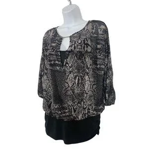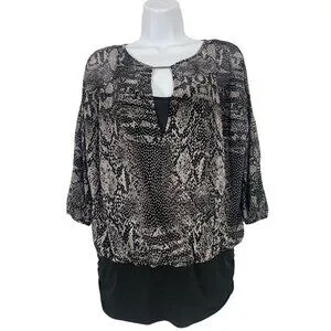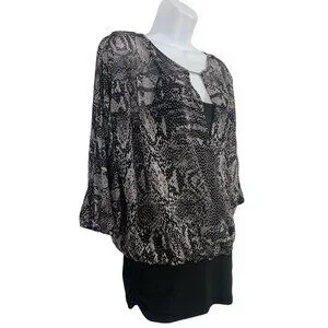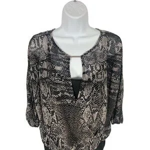 Jennifer Lopez Womens Small Snake Print Blouse With Keyhole Neckline Small