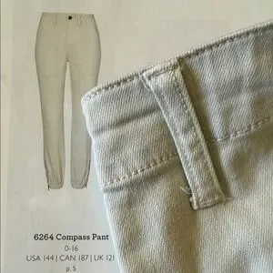 Stylish khaki ankle and cropped jeans by CAbi. Perfect for casual wear. Front and back pockets. Ankle zip option.