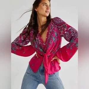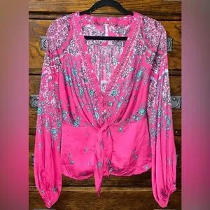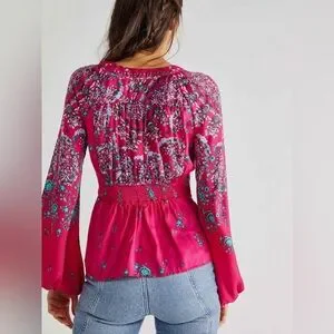 Free People Run Free Blouse in Pink Combo, NWOT