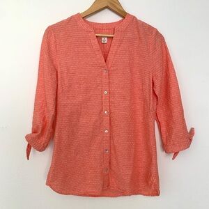 🌿 Westbound Coral Orange Linen Cotton Button-Up Shirt Blouse Top