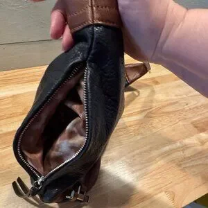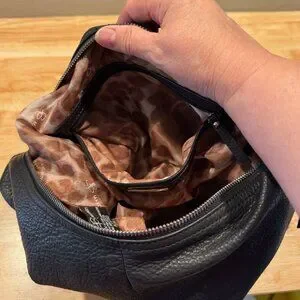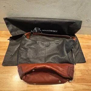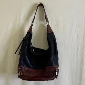 B. Makowsky Mahogany Brown & Black Pebble Leather Shoulder Bag Purse & Dust Bag