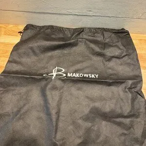 The B. Makowsky Mahogany Brown & Black Pebble Leather Shoulder Bag Purse is a stylish and versatile accessory for women. Made from high-quality leather with a pebbled finish, this medium-sized bag features a zip closure and a shoulder strap handle in brown. The interior is lined with fabric and includes an inner zip pocket and 3 open pockets for organization. There is also an outside zipped pocket on each side of the bag. Ideal for various occasions like travel, parties, casual outings, and business meetings, this classic designer bag exudes sophistication and functionality. Packaged with an original dust bag, this purse is a must-have for any fashion-forward woman.