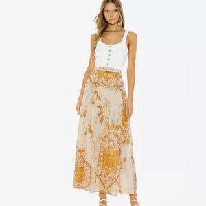 Free People Farrah Drop Waist Maxi Skirt Ivory Gold Size 6