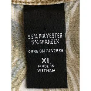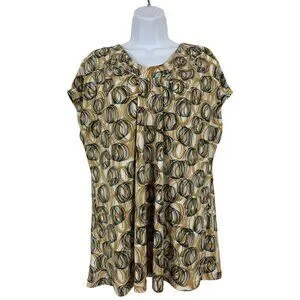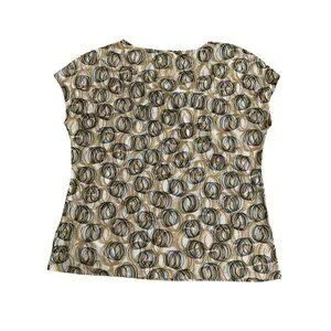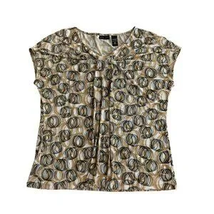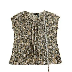 New York & Company Womens Stretch Top Beige & Black Circles Pattern Short Sleeve