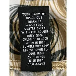 This New York & Company top features a unique circles pattern, offering a stylish option for professional settings. The stretch material ensures comfort and ease of movement, making it suitable for long workdays or professional gatherings. Its neutral beige and black color scheme allows for versatile pairing with different outfits.