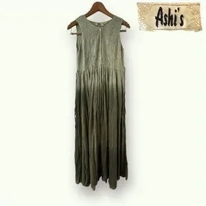 Ashi’s Sleeveless Olive-Green Batik Maxi Dress