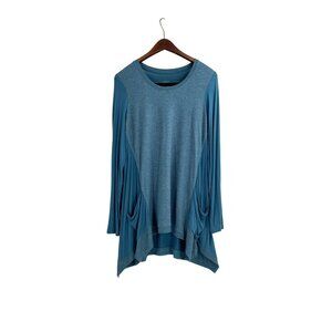 LOGO Lori Goldstein Womens Large Long Sleeve Teal Tunic Top Lagenlook Pockets