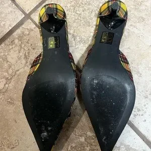Jeffrey Campbell yellow plaid mules bought from Urban Outfitters. Never worn outside, just around my apartment when I decided they didn’t fit very well. Feel free to ask any questions below! Size US 8, EU 39.