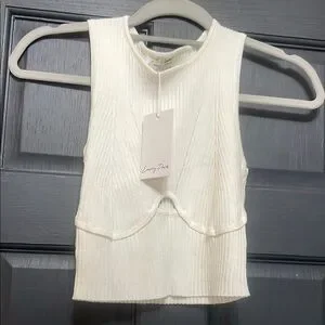 Ivory Ribbed Sleeveless Crop Top NWT