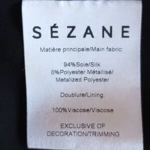 94% silk and 6% polyester with 100% viscose lining.