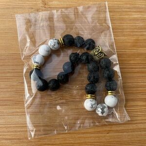 Black Lava Stone Natural White Howlite Owl Charm Bracelet