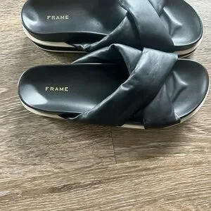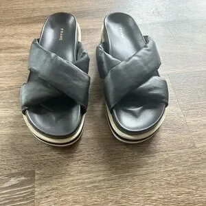 FRAME Women's Le Playa Leather Platform Slide Sandal Black Sz 39 US 8.5