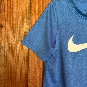 Nike Blue Dri-Fit Short Sleeve White Swoosh Tee Boys Size S