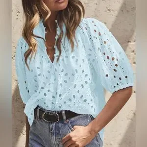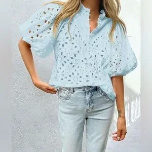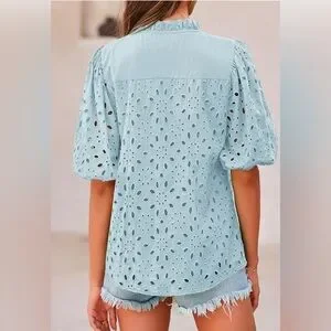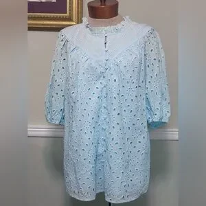 NWT Pretty Garden Eyelet Puff Sleeve Top • XL
