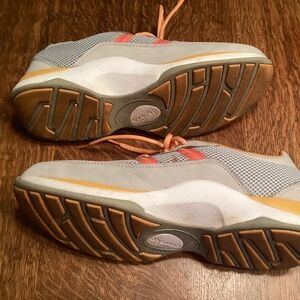 Dansko sneakers in gray and orange. Great wearable condition, great soles. Size 41 (9.5 US). Synthetic fabric uppers.