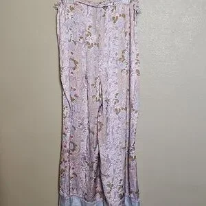 Free People XL Dreamy Days Wide Leg Lounge Pants Lilac Rose Print Floral Satin in excellent condition, adjustable drawstring waist for tighter or looser fit