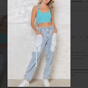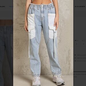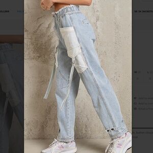 Upgrade your wardrobe with these stylish POL Striped Denim Cargo Jeans. These jeans are perfect for women who are looking for a relaxed fit with a touch of style. Made of a lightweight denim fabric, these jeans are comfortable to wear all day long. The light wash striped denim and straight leg style make these jeans a versatile addition to your wardrobe. These jeans are perfect for casual outings or even for a day at the office. With their unique cargo and stripe design, they are sure to stand out from the crowd. New boutique item.