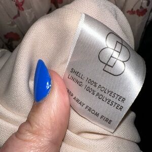 No rips or stains, but missing the belt. Dress can be worn without or can replace with another.