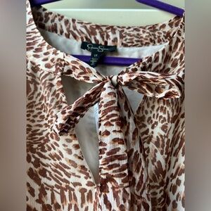 Chic animal print dress with long sleeves. Features a tiered skirt and keyhole neckline.