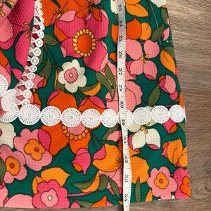 Eliza J Mod Shift Style Dress Women’s Sz 8 Green Floral Flowers Lace Colorful