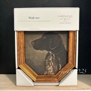 Add a touch of timeless charm to your gallery wall or shelf with this Pointer Dog Portrait from Threshold designed with Studio McGee. This modern wall art features a classic silhouette of a pointer dog, beautifully framed in a gold-toned finish. Rich tones evoke old-world appeal—perfect for adding character to entryways, dens, or curated vignettes.
