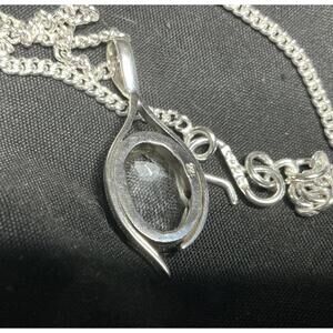 2ct. White topaz set in sterling silver stamped. Explore the beauty of this elegant necklace from Vera Volpe, featuring a stunning oval shaped white topaz that adds a touch of sophistication to any outfit. Crafted with sterling silver, this necklace is perfect for special occasions or everyday wear. The shimmering stone catches the light beautifully, creating a captivating effect. Pendant length is ideal for showcasing your unique style. Sterling Silver chain, 19.5”. Easy on hook clasp. Key features include: