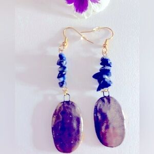 Earrings NWOT Artisan Naughty Victorian Ladies Ceramic Sodalite stone 3” pierced