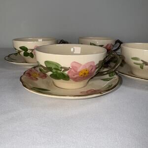 4 Franciscan Desert Rose Cups and Saucers, great condition, no chips/cracks/crazing, saucers made in USA, cups made in England, exactly as pictured.