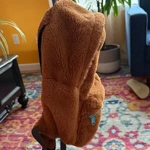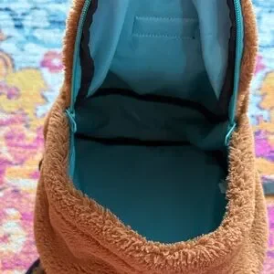 Soft and stylish Kavu backpack— brown with turquoise zippers and inside and dark green straps. Features a front pocket for easy access. Great condition!