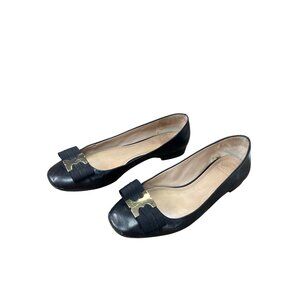 These Tory Burch flats feature a timeless design with black leather and gold hardware, offering an elegant touch to any outfit. Ideal for professional settings, these shoes provide both style and comfort. The leather material ensures durability and a sleek look, making them a versatile addition to any wardrobe. Minor wear pointed in pics but very minor and in very good condition in and out. I ship fast. SKU 8847