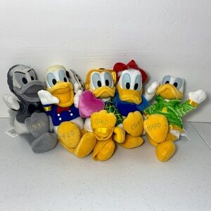 This collection is from the Disney Catalog 2003 and is very rare and hard to find. New in the original bag. Each plush represents Donald Duck through the years and includes Donald Duck in 1934, 1935, 1940, 1947, and 1990. This collection came as a set from the Disney Store Catalog 2003. Originally they did not come with hang tags but all came with the original tush tags. Please check the video and photos for measurements and more details. Turntable and doll stands are not included.