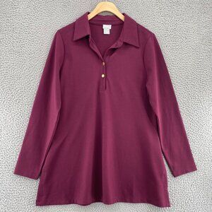 Chicos Top Womens 1 US Medium Burgundy Ponte Collared Long Sleeve Tunic Stretch