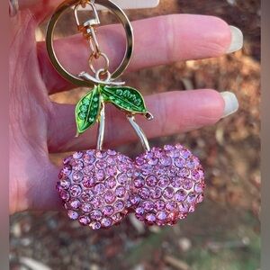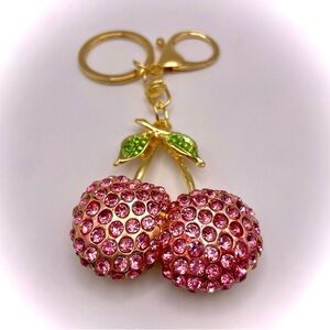 PINK CHERRY SPARKLES | Rhinestone Bag Charm | Keychain (Brand New!) 🩷
