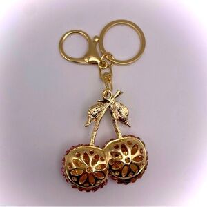 • DESCRIPTION: Super pretty cherry bag charm or keychain. Made of gold-toned metal that is painted with colorful enamel coating and encrusted in rhinestones. Makes a wonderful gift! Also available in red (***while supplies last!!!***)