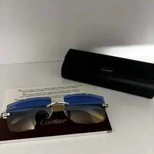 Rimless Blue Yellow Gradient lens diamond cut Cartier comes with accessories, 10/10 condition