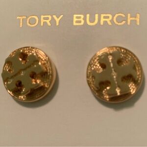 Tory Burch 18 K gold plated Stud Disc Earring thick and Kira Logo in the center