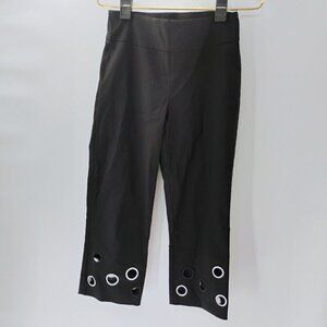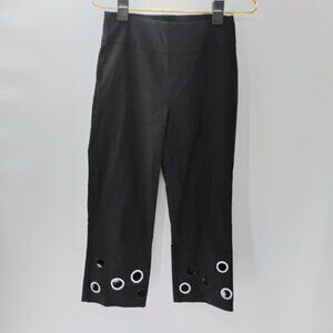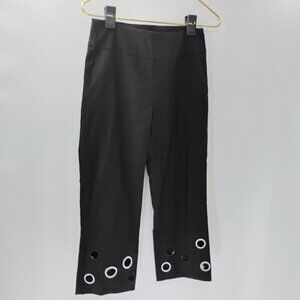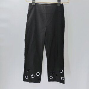 Joseph Ribkoff Womens Size 4 Crop Capri Black Pants Faux Coin Details #3610
