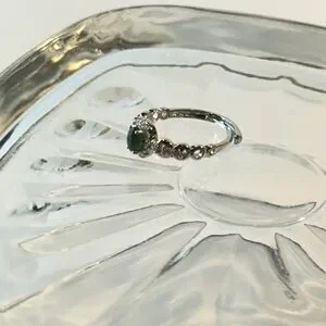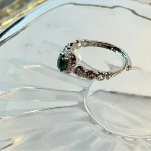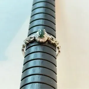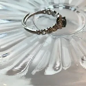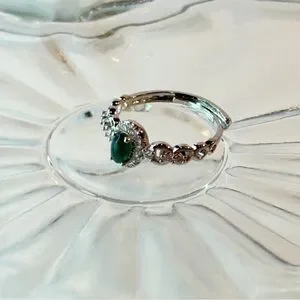 Elegant Sterling Silver Jade Ring – Dainty Halo Style, Size 5.45 Adjustable NWOT