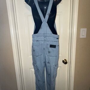 Risen Jeans Womens Overalls Denim Stars Light Wash Blue Size Small