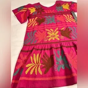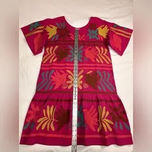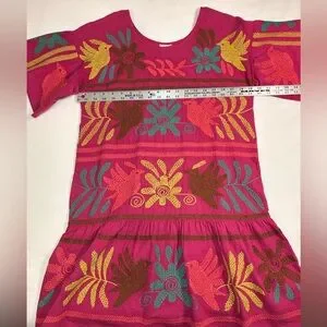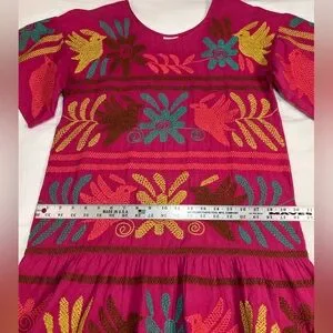 • Otomi-inspired embroidery: Featuring traditional Mexican motifs commonly seen in Otomi textiles, which include stylized birds, plants, and floral shapes.