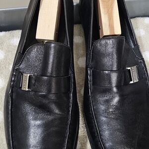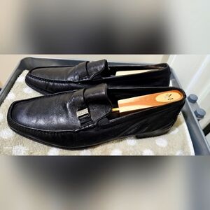 Step out in style with these Bruno Magli black leather loafers. Perfect for any occasion, these shoes offer both elegance and comfort.