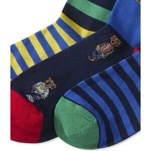 NWT NIP POLO RALPH LAUREN Men's Socks 3-Pack Mini Bear & Stripe MULTI COLOR