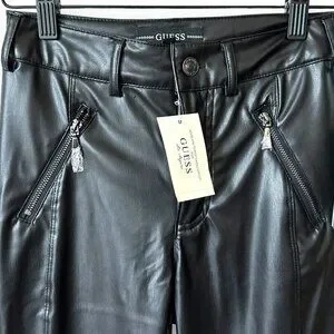GUESS Women's Soto Faux Leather Skinny Pant Jet Black Sz 0