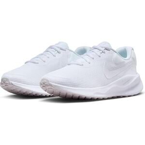 Lightweight and cushioned Nike Revolution 7 road running shoes for women, in clean white for versatile performance and style.