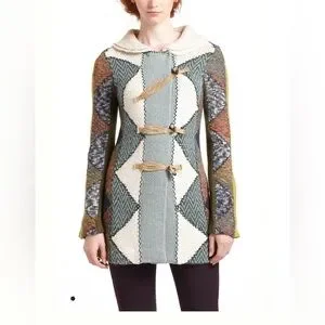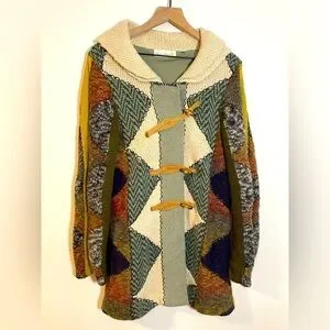 Anthropologie Harlequin Patchwork Sweater Long Chunky Knit Sweater Cardigan