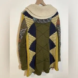 Anthropologie Charlie & Robin Harlequin Patchwork Knit Sweater Chunky Boho RARE